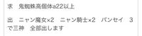 鬼蜘蛛出します なので昨日の全部もらえますか?
