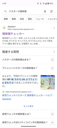 aが力、mが妖力だったはずです⬇の個体値チェッカーに測定したい妖怪の名前、Lv、個体値入れるとH○a○といったふうに出してくれます