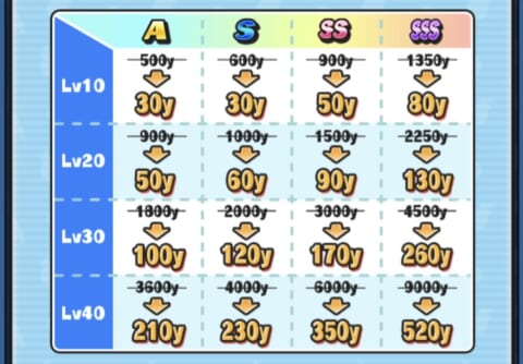 妖怪のレベル上限開放時に必要なYマネーやYポイントが期間限定で割引されます。