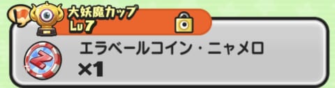 妖1グランプリの大妖魔カップLv7をクリアするとご褒美として1枚もらえます。