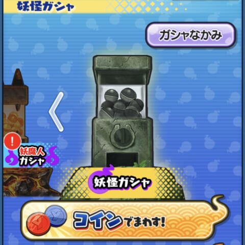 妖魔人キャラなどがラインナップされた特別なコインです。このコイン1枚で10回分ガシャをまわせます。