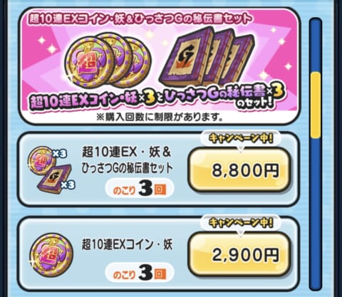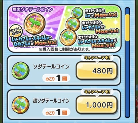 妖怪ウォッチぷにぷにでは特別なコインが販売中です。