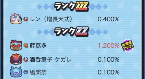 期間限定ガシャ(ガチャ)の当たり妖怪や確率アップスケジュールについてまとめました。
