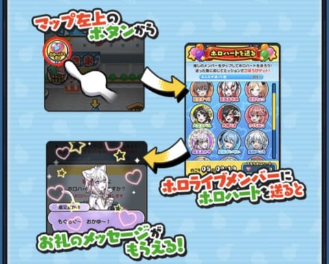 ホロハートを集めたらホロメンに送ってみましょう。