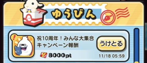 Yポイントはゆうびんに届きます。届いていない場合は、タイトル画面に戻りログインし直してください。