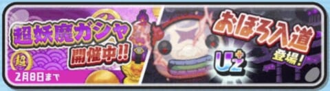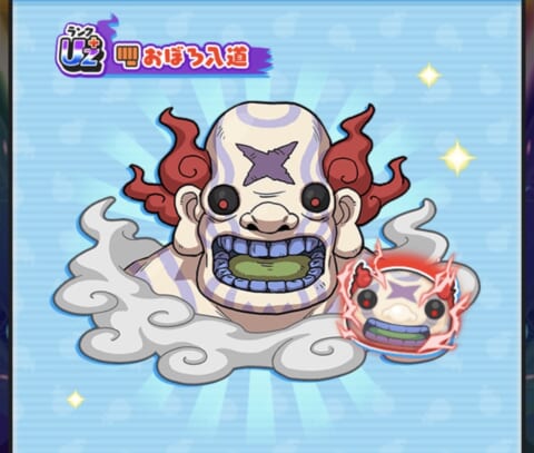 超妖魔ガシャでは新キャラ「おぼろ入道」が登場し、少し育成された状態(レベルMAX&技レベル3)で仲間になります。