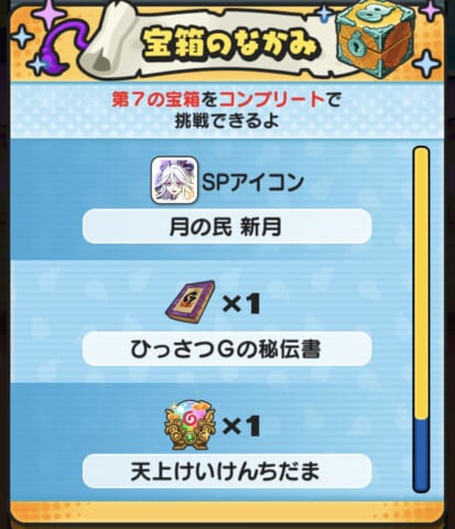 第8の宝箱の鍵を8色揃えると「月の民新月(SPアイコン)」がもらえます。