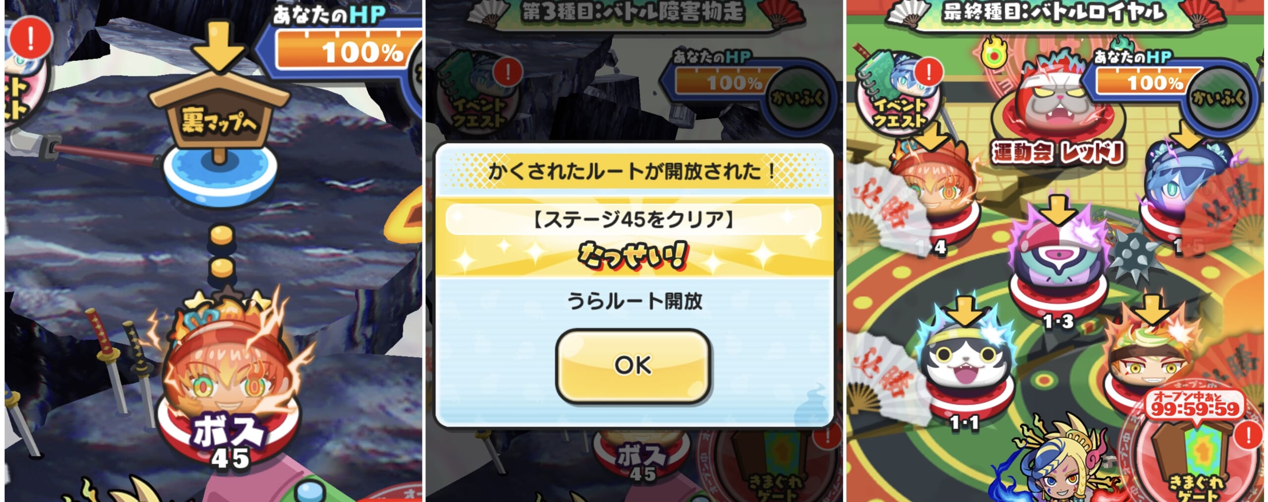 裏マップ「最終種目:バトルロイヤル」では封印ボス(運動会レッドJ)や中ボスたちと戦うことができます。ボスのパワーを封印したり、特攻キャラを使って倒しましょう!