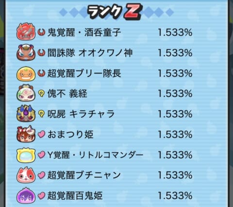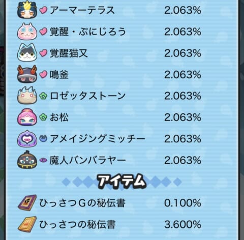 期間限定ガシャ(ガチャ)の当たり妖怪や確率アップスケジュールについてまとめました。