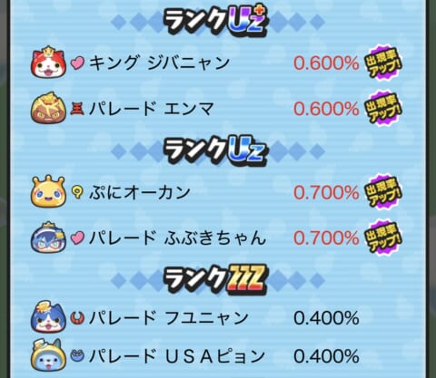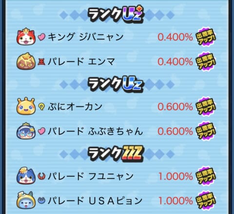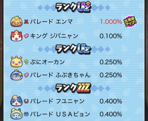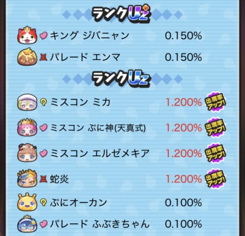 期間限定ガシャ(ガチャ)の当たり妖怪や確率アップスケジュールについてまとめました。