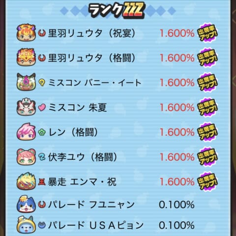 新キャラ出現率アップ! |