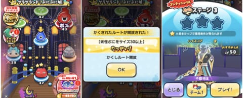 【ステージ解放のコツ】 自身の妖怪ぷにが「でかぷにで降る」スキルや、細かく繋げると簡単にでかぷにが作れる「サイズアップ」のスキルを持つ妖怪を使ってみましょう。 【おすすめ妖怪】 |