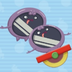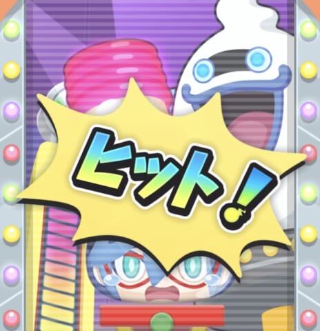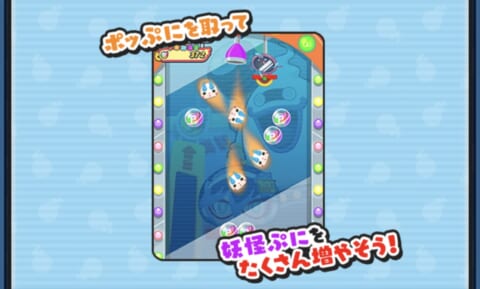 カプセルに当たるとパワーがアップし、妖怪ぷにが弾かれます。 |