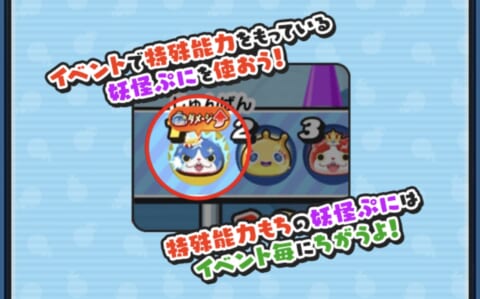 イベント限定でポッぷにポップでのバトルに特殊能力を発揮する妖怪が設定されています。優先的に編成してハイスコアを狙いましょう。