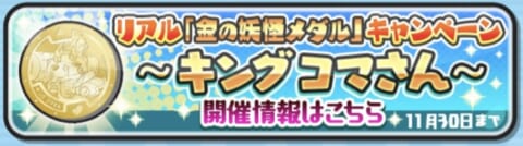 リアル「金の妖怪メダル」が貰えるキャンペーンが開催されます。