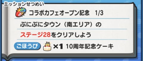 11/18(火)から登場したイベントミッション「コラボカフェオープン記念」の報酬で10周年記念ケーキがもらえます。
