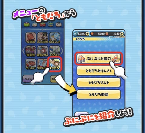 - メニューの「ともだち」から「ぷにぷにを紹介」をタップ