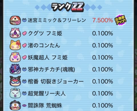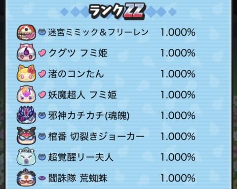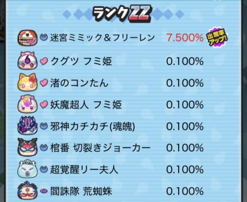 期間限定ガシャ(ガチャ)の当たり妖怪や確率アップスケジュールについてまとめました。