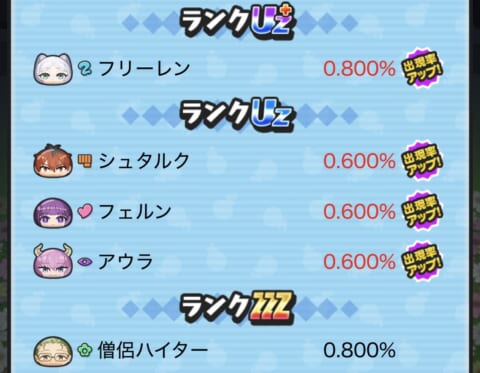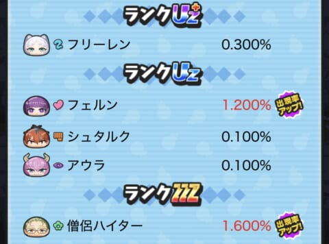 新キャラ出現率アップ!