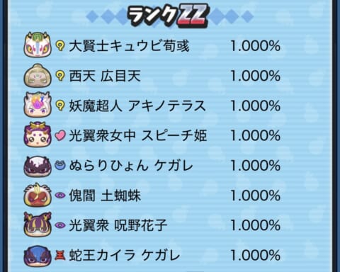 期間限定ガシャ(ガチャ)の当たり妖怪や確率アップスケジュールについてまとめました。
