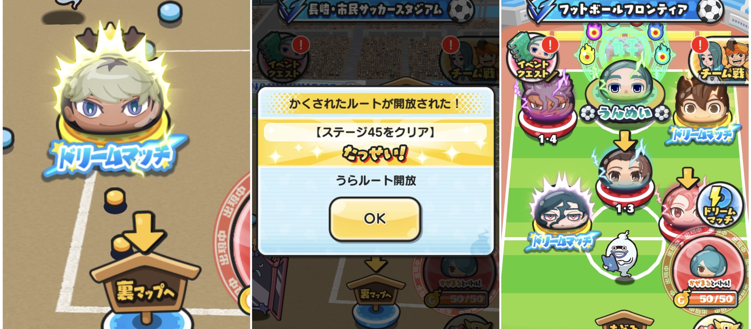 裏マップ「フットボールフロンティア」では封印ボス(うんめい)や中ボスたちと戦うことができます。ボスのパワーを封印したり、特攻キャラを使って倒しましょう!