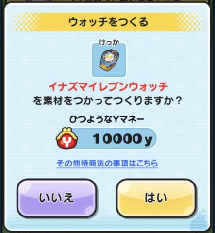 時計の作成には10,000Yマネーが必要です。