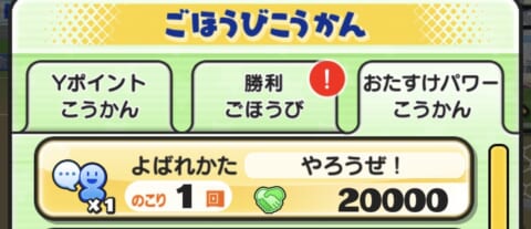 フレンドを助けるともらえる「おたすけパワー」で呼ばれ方「やろうぜ!」が入手できます。交換に必要なおたすけパワーは20,000です。