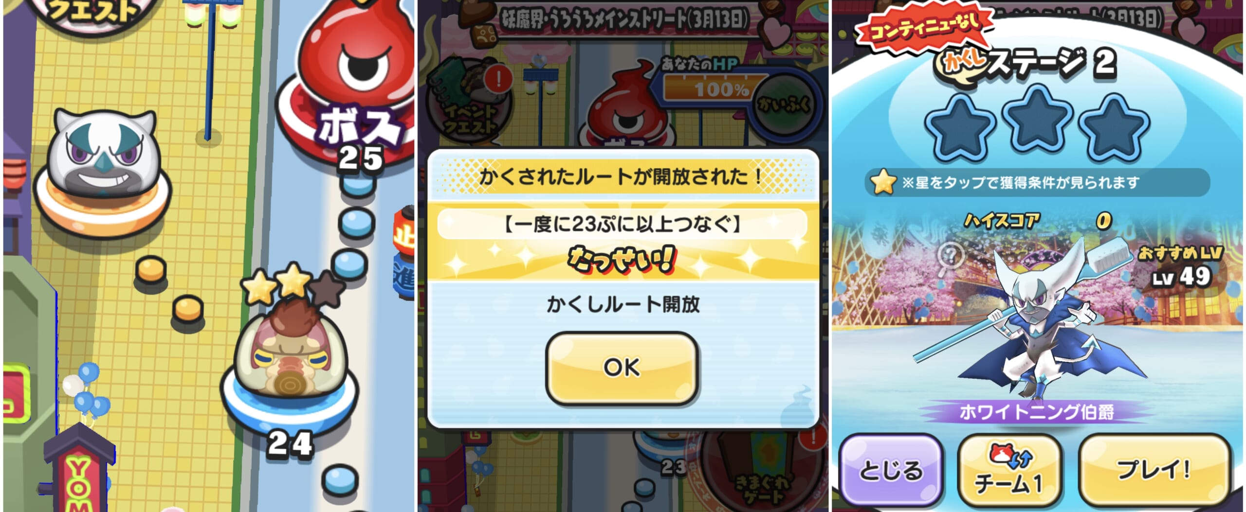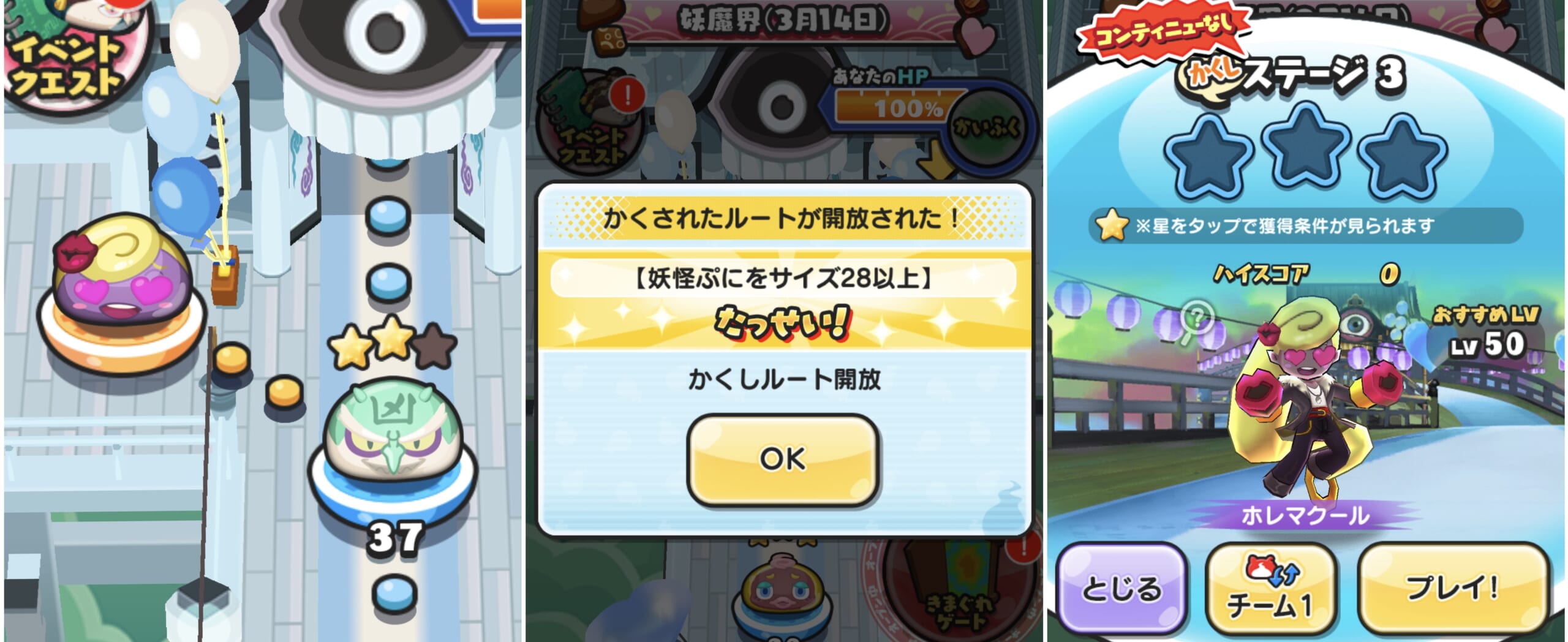 妖怪ウォッチぷにぷにで開催中の「百物語(ホワイトデー)」のイベントマップに登場する隠しステージの解放条件を紹介します。