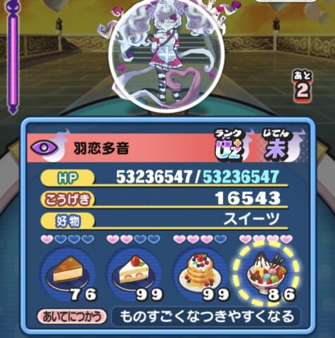 妖怪ウォッチぷにぷにで開催中の「百物語(ホワイトデー)」の封印強敵「羽恋多音」を攻略していきましょう。