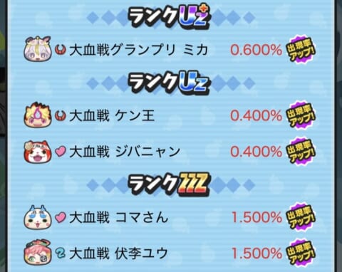 期間限定ガシャ(ガチャ)の当たり妖怪や確率アップスケジュールについてまとめました。