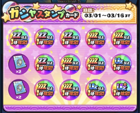 ・対象ガシャ10連ごとにガシャスタンプが1回押され、特典がもらえます。