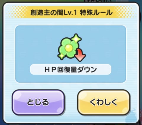 創造主の間に設定されている特殊ルールは「HP回復量ダウン」です。