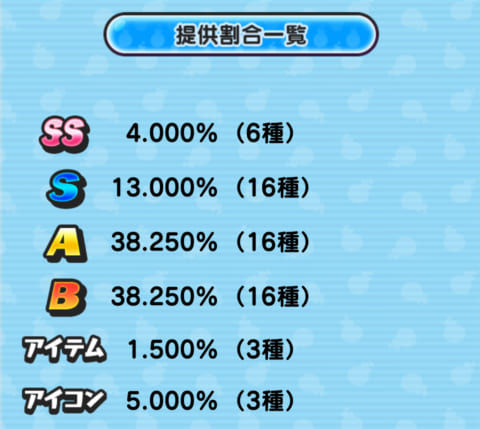 このガシャに天井はありません。技レベルがマックスの妖怪が重複した場合、ランクに応じたアイテムと交換されます。