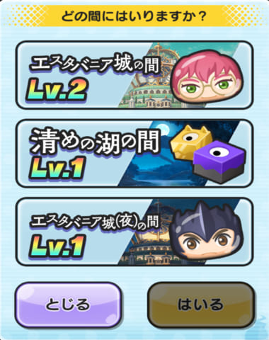 「はい」を選択すると、どの「間」に入るか聞かれるので、自分の入りたい「間」を選んで「はいる」をタップしましょう。