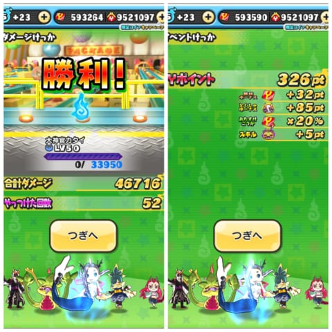 フルパワーで戦うと5体全ての妖怪を使う前に大神官カタイを倒してしまうこともあるので、時間がないとき以外は10Gずつプレイするようにしましょう。
