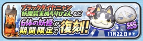 この復刻により、クシナダとのおはじきバトルでブラックダイヤニャンに「ダメージ中アップ」、残りの復刻妖怪5体に「ダメージ小アップ」の特殊能力がつきました。