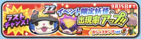 イベント最後の確率アップです。限定妖怪を手に入れたい方は忘れずにガシャを回しましょう。