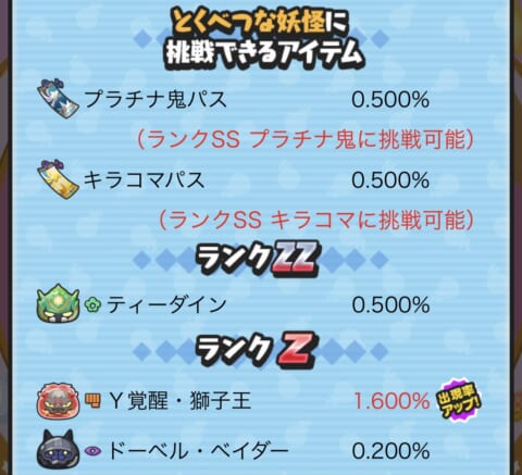 妖怪ウォッチぷにぷにでは妖怪学園YガシャにY覚醒・獅子王が追加されました。期間限定で出現率も超アップしています。