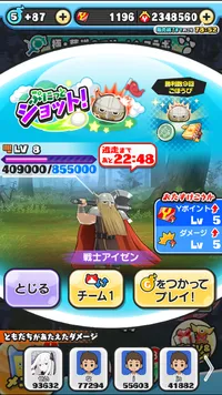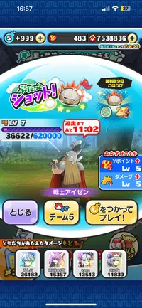 アイゼンレベル8出ました。倒します。お助けお願いします。一発お願いします。お助けしてくれた人にはお助け特攻で通常でも強敵でもします。