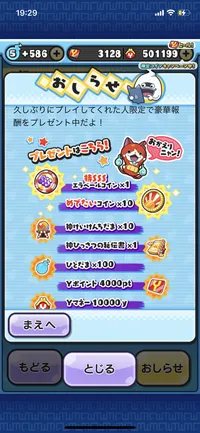 最近プレイしていない場合は、欲しいSSSランク妖怪が手に入る!