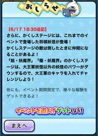 最新ガシャ当たり妖怪&確率アップスケジュール!【ハル(イナイレ)/きそじ出現率アップ!30%OFF!ガシャスタンプ!】