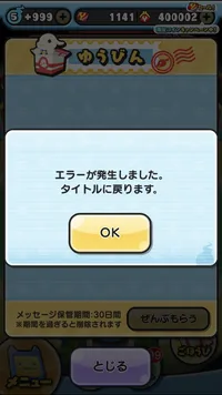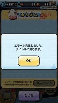 受け取りボックスから受け取ろうとすると本垢だけエラー起きて毎回最初の画面に戻されるんですけど直し方わかりますか?