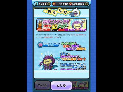 このガシャには天井がないため、運が悪いと多額のYポイントを消費することになります。ロボニャン・ケイの出現率がアップしている時を狙ってガシャを回すようにしましょう。