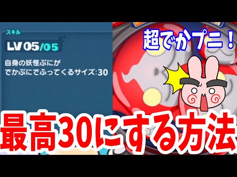自身の妖怪ぷにがまれに超大サイズで降ってくるスキルを持っています。スキルレベルを最大(Lv5)まで上げると、降ってくるサイズが18になります。でかぷにが降ってくるスキルは「大量ぷに消し」や「全消し&でかぷに技ゲージ増」の妖怪と相性が良いので一緒に使ってみましょう。