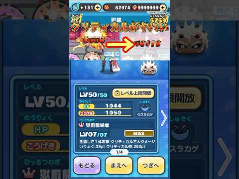 必殺技を発動すると妖怪ぷにを全て消し、運が良いと大ダメージを与えることができます。クリティカルが出ないと敵に与えるダメージがかなり低いので注意しましょう。