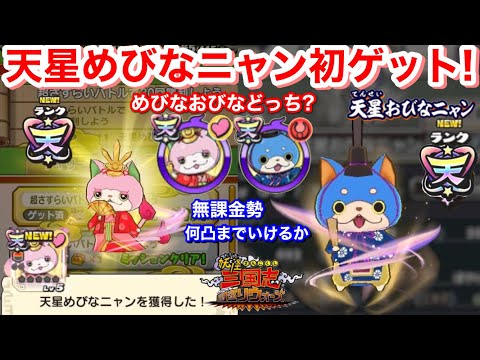 天星めびなニャン 初ゲット!天星おびなニャン どっち?限界突破!入手方法 絆 集め方!さすらいバトル!【妖怪三国志国盗りウォーズ】大遠征 超ガシャチケット 無料配布たくさん!ノルカ ソルカ Yokai