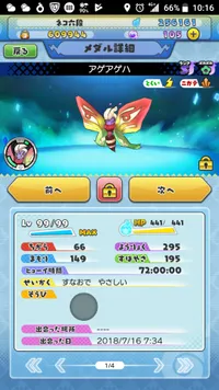アゲアゲハの99レベのステータスのデータがちょっと低いようですね。参考までにうちの99レベの写真付けときます。