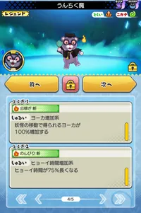 これですよね。 戦闘で使うか、ヒョーイで使うか。 私の場合、長時間ヒョーイできる妖怪を優先してしまうのですが。